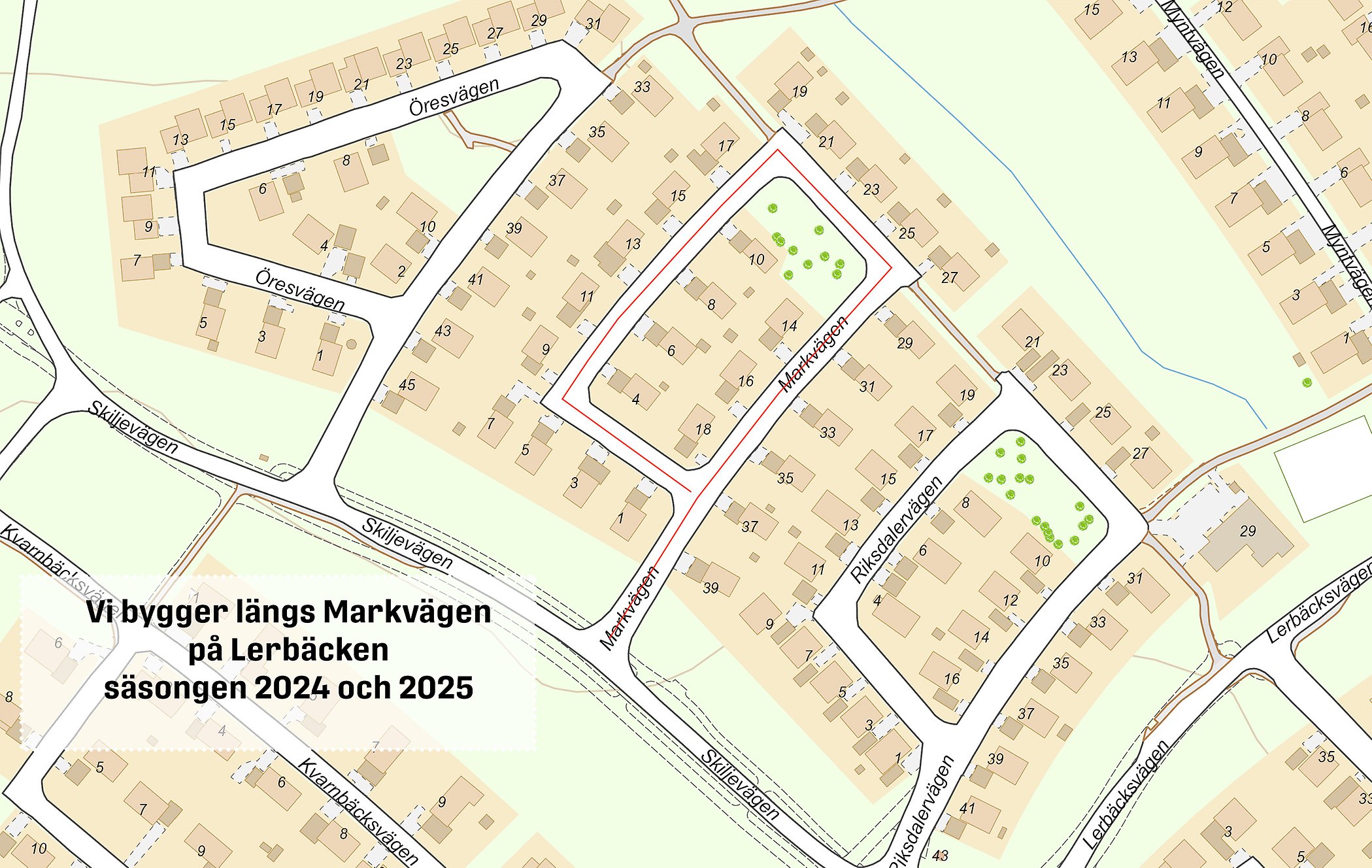 - Augusti 2025: Arbetet på Markvägen återupptas i början av augusti